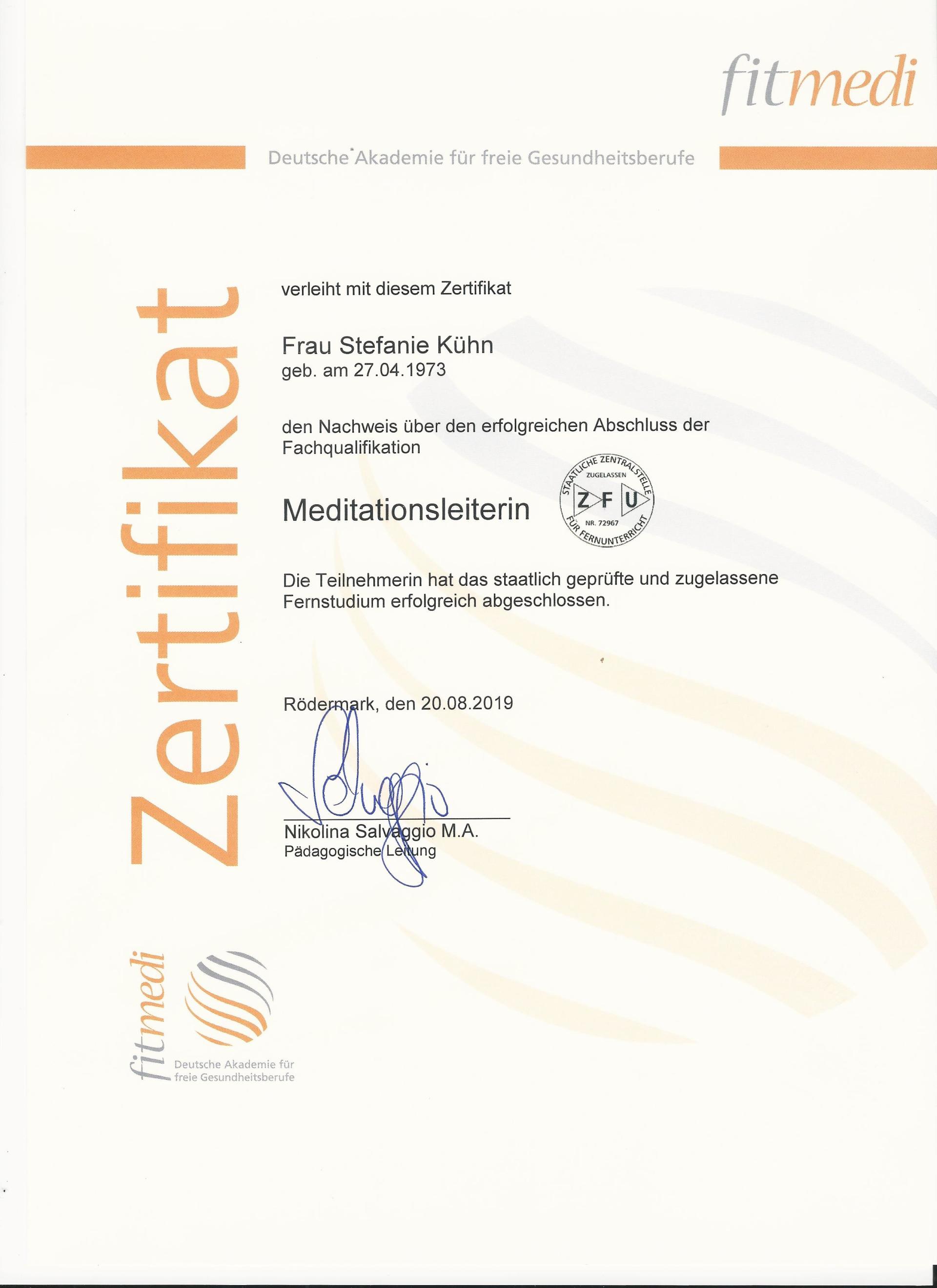 sowie staatlich geprüfte Meditationsleiterin.